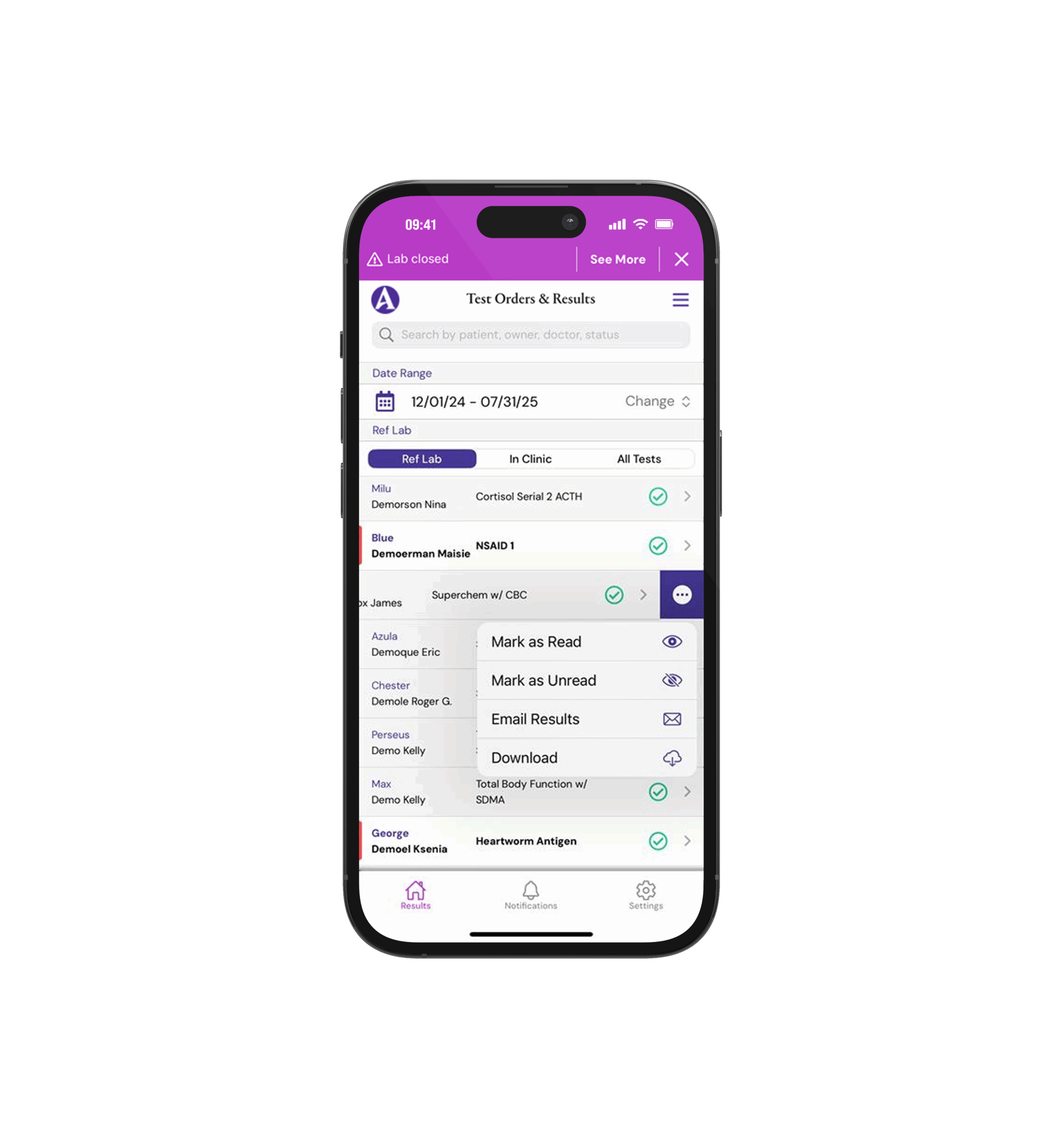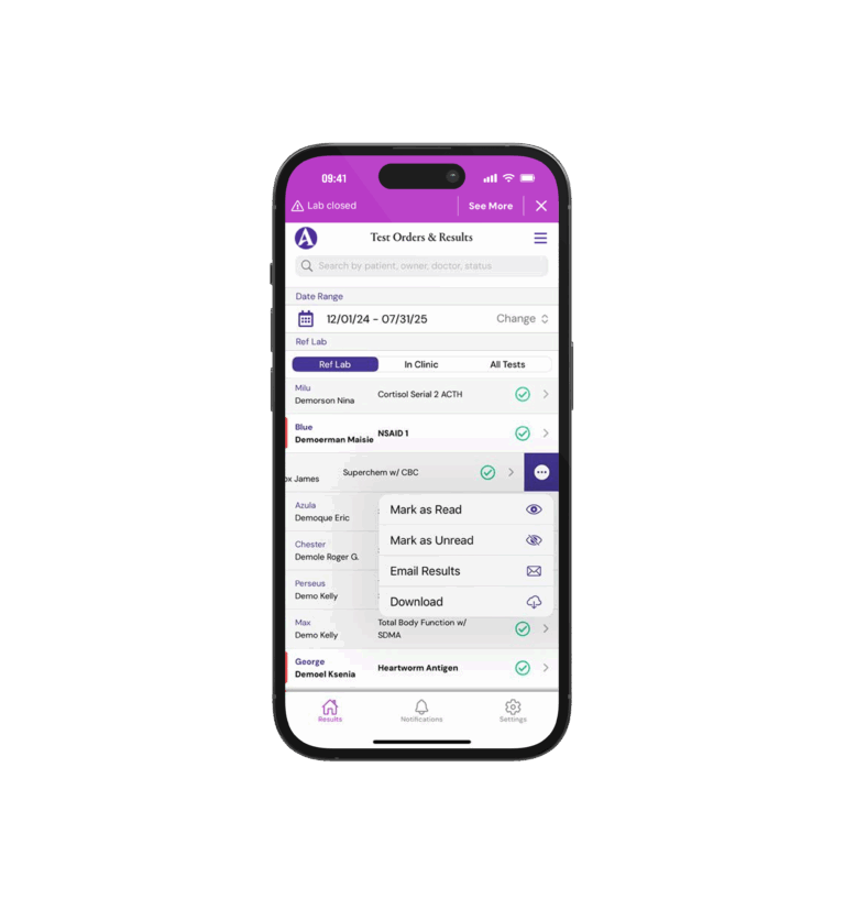 - Quick search by veterinarian, pet name, accession number, owner, and more.