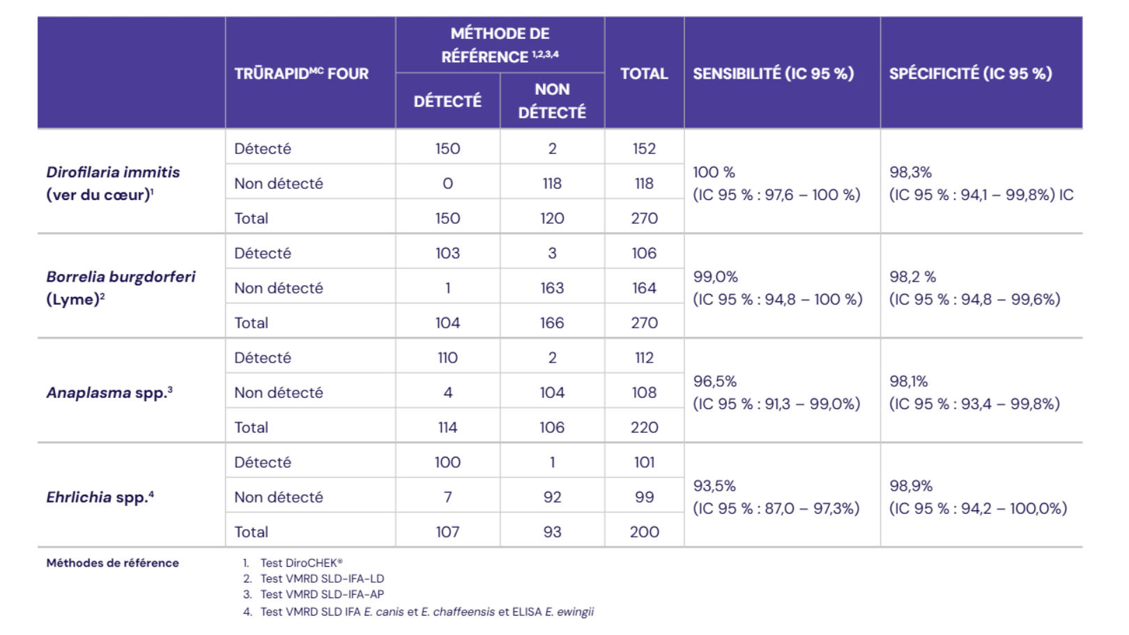 Excellente sensibilité et spécificité par rapport aux méthodes de référence.